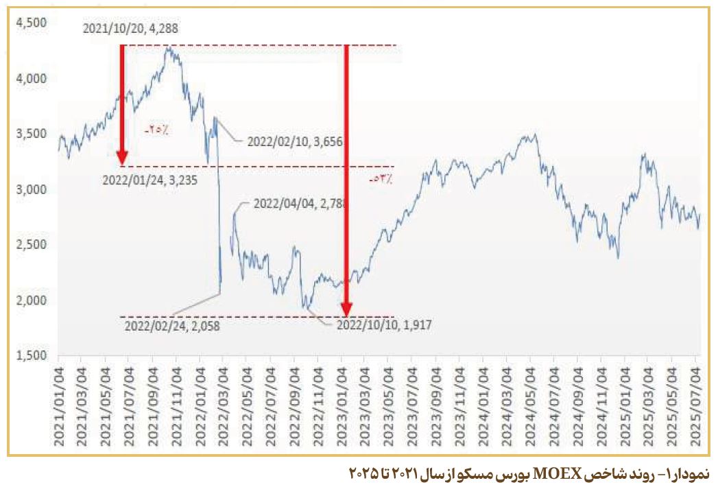 ۲-۱-۲- روند بورس مسکو پس از آغاز جنگ روسیه و اوکراین