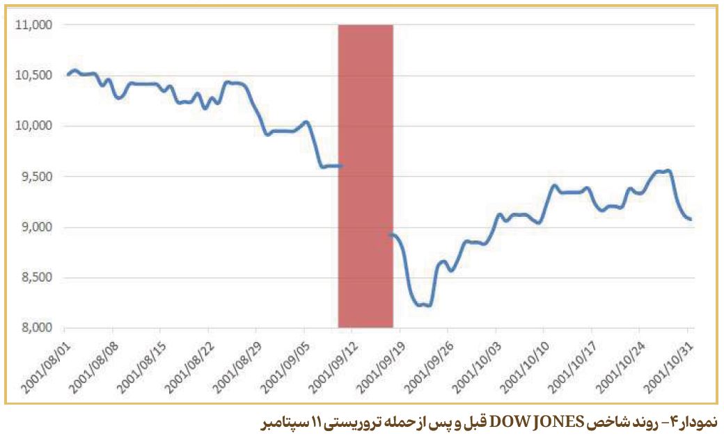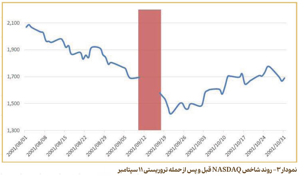 حملات تروریستی ۱۱ سپتامبر ۲۰۰۱، یکی از فجایع بزرگ و تأثیرگذار تاریخ معاصر جهان بود که پیامدهای عمیق و بلندمدتی بر عرصه‌های سیاسی، اجتماعی و اقتصادی آمریکا و جهان بر جای گذاشت. این حملات به شکلی مستقیم و بی‌سابقه، بازارهای مالی آمریکا به‌ویژه دو بورس نیویورک و نزدک را تحت تأثیر خود قرار داد. در ساعت ۰۸:۴۶ به وقت منطقه شرق آمریکا صبح روز ۱۱ سپتامبر، اولین هواپیما، پرواز شماره ۱۱ شرکت امریکن ایرلاینز، با سرعت بالا به برج شمالی مرکز تجارت جهانی برخورد کرد؛ جایی که از مهم‌ترین نمادهای اقتصادی و مالی جهان به شمار می‌رفت. تنها ۱۷ دقیقه بعد و در ساعت ۰۹:۰۳ صبح، دومین هواپیما، پرواز شماره ۱۷۵ یونایتد ایرلاینز، به برج جنوبی برخورد کرد و سراسر نیویورک و آمریکا را در شوکی عمیق فرو برد. این حملات فضای شهر نیویورک به‌ویژه منطقه مالی منهتن را به‌شدت متأثر کرد و اگرچه به ساختمان اصلی بورس نیویورک آسیبی فیزیکی وارد نکرد، اما شدت حادثه و نزدیکی آن به قلب مالی این کشور (فاصله حدود ۶۵۰ متری تا ساختمان بورس نیویورک) باعث اختلالات جدی در روند بازارهای مالی شد. طبق برنامه معمول بورس نیویورک قرار بود رأس ساعت ۰۹:۳۰ صبح بازگشایی شود، اما وقوع حملات و ایجاد جو هرج‌ومرج، موجب توقف نشست پیش‌گشایش شد و عملاً شروع معاملات متوقف و تمامی فعالیت‌های معاملاتی در بزرگ‌ترین بازارهای سهام آمریکا ازجمله بورس نیویورک، نزدک و سایر بازارهای مهم تا اطلاع ثانوی به حالت تعلیق درآمد. این تعطیلی که به‌هیچ‌عنوان پیش‌بینی نشده بود و به دلیل شدت بحران و نگرانی‌های امنیتی، لجستیکی و روانی پیش از پایان مرحله پیش‌گشایش و ورود بازار به مرحله گشایش آغاز شد و تا روز دوشنبه ۱۷ سپتامبر به مدت ۴ روز کاری و ۶ روز تقویمی ادامه داشت. این مدت به‌عنوان یکی از طولانی‌ترین وقفه‌های زمانی در تاریخ آمریکا ثبت شد و نشان‌دهنده میزان تأثیر عمیق این شوک بر سیستم مالی این کشور بود. زمان شروع به کار مجدد بازارها با هیجان و اضطراب همراه بود. شاخص نزدک در روز بازگشایی ۶.۸ درصد سقوط کرد و در روزهای بعد تا ۱۶.۸ درصد از ارزش خود را از دست داد. شاخص داوجونز، به‌عنوان یکی دیگر از مهم‌ترین شاخص‌های نمایانگر وضعیت کلی بازار سهام آمریکا، در روز نخست بعد از بازگشایی بیش از ۷.۱ درصد سقوط کرد و این روند نزولی تا پایان هفته معاملاتی به بیش از ۱۴ درصد رسید.