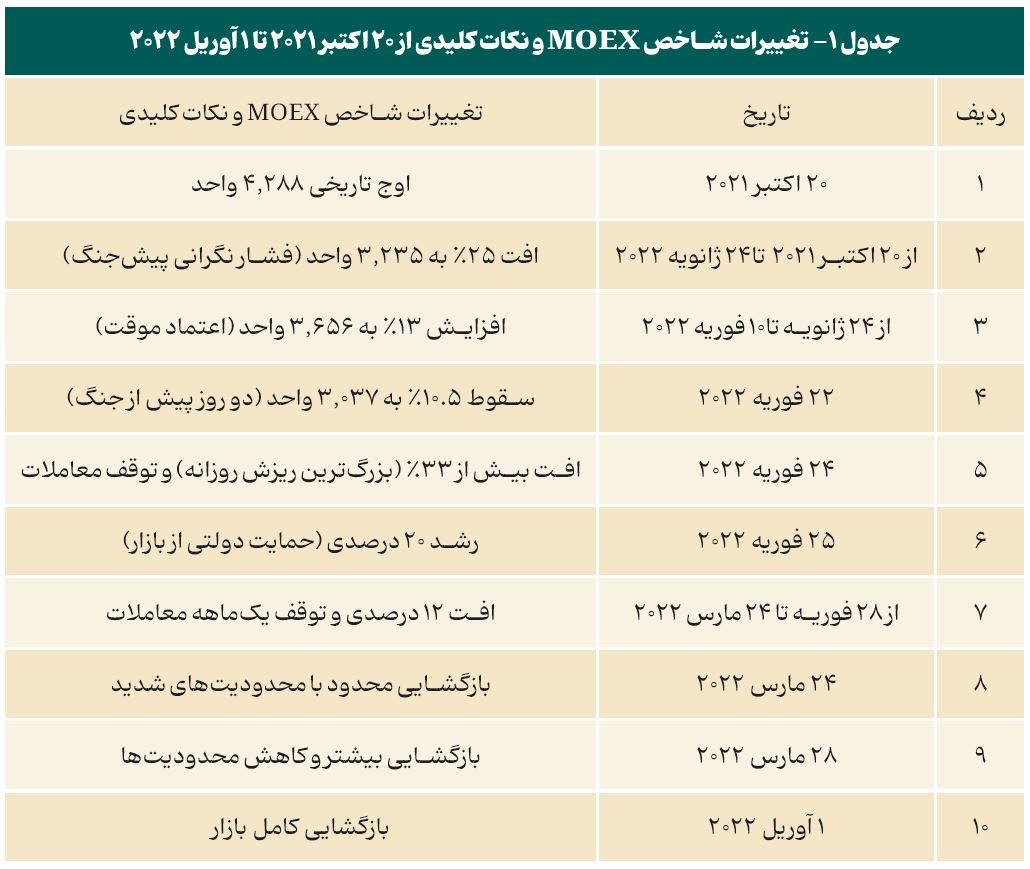 ج. تعطیلی بورس مسکو (۲۸ فوریه تا ۲۴ مارس ۲۰۲۲)
