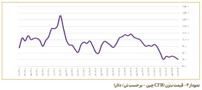 به‌منظور درک بهتر روند تأثیر نوسانات بازار انرژی و مواد اولیه بر قیمت آلکیل‌ بنزن خطی، نمودار تغییرات قیمتی نفت برنت، نفت سفید، بنزن (CFR هند) و LAB (CFR هند) در ادامه ارائه شده است.