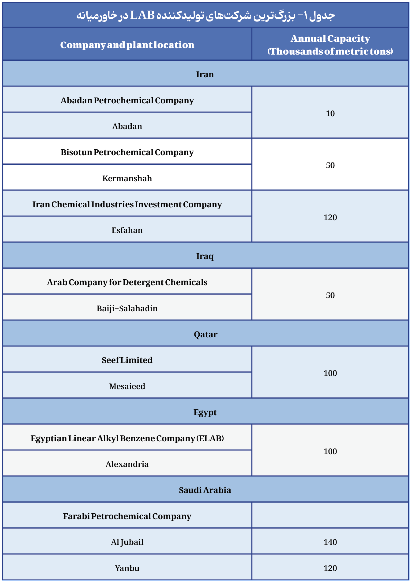 صنعت LAB در منطقه خاورمیانه