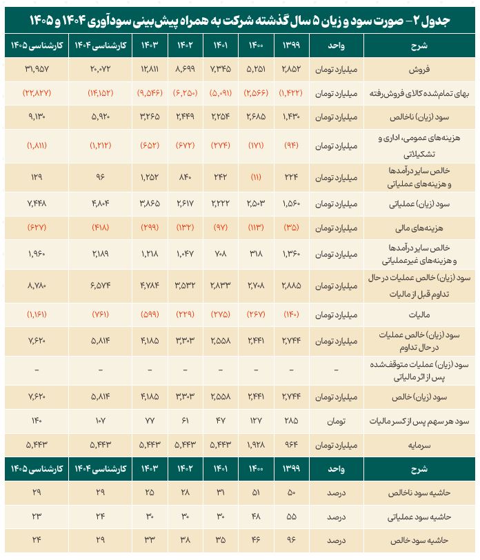 در کنار سود عملیاتی، شرکت‌های زیرمجموعه نیز نقش قابل‌توجهی در سودآوری دارند و حدود ۷۰۰ میلیارد تومان سود غیرعملیاتی از این محل شناسایی می‌شود. از منظر ریسک‌های عملیاتی نیز، به‌دلیل ماهیت فرآیند و نوع مصرف انرژی، احتمال آسیب‌پذیری شرکت از محل قطعی گاز و برق نسبت به بسیاری از شرکت‌های پتروشیمی و فولادی پایین‌تر ارزیابی می‌شود؛ موضوعی که پایداری سودآوری شرکت را در سناریوهای مختلف انرژی تقویت می‌کند.